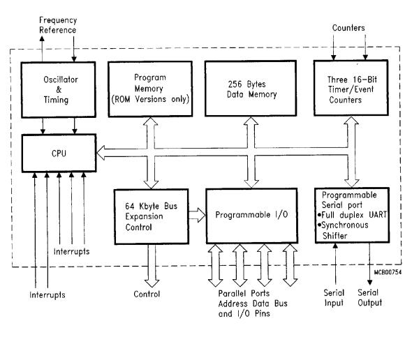 The SAB8032B-P is an 8-Bit Sigle-Chip Microcontroller. The SAB8032B-P is fabricated in +5V advanced N-channel, silicon-gate simens MYMOS technology, packaged in a 40-pin plastic dual-in-line package or 44-pin plastic leaded chip carrier packaged. The SAB8032B-P contains a non-volatile 8K*8 read-only program memory, a volatile 256*8 read/write memory, 32 I/O lines, three 16-bit timer/counters, a six-sourcem two-priority-level nested interrupt structure, a serical I/O port for either multiprocessor communications, I/O expansion, or full-duplex UART, as well as an on-chip oscillator and clock circuits.